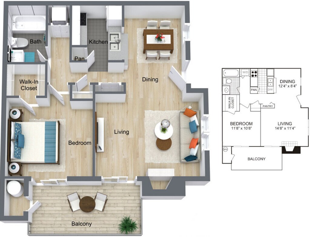 2 Beds, 1 Bath, 799 sq ftAvailable Oct 24Model Gallery