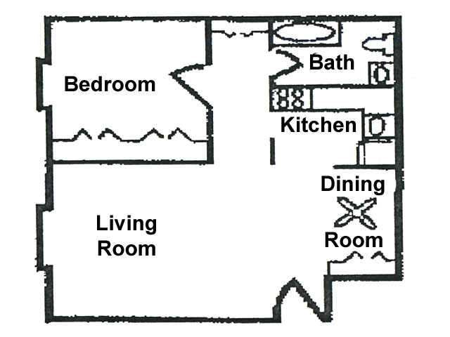 1 Bed/1 Bath/627 sq ft - Floorplan 14 1 Bed/1 Bath/627 sq ft/Renovated