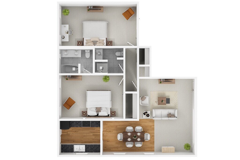 2 Beds, 2 Baths, 1121 sq ftModel Gallery