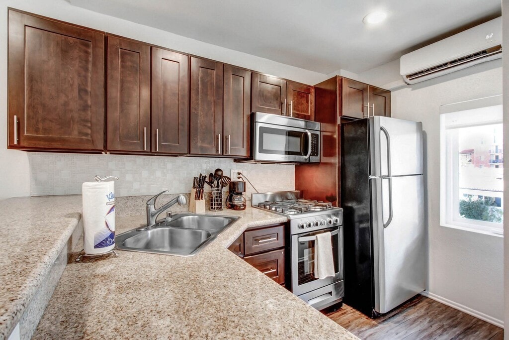 Short-Term Furnished Housing SpecialistsYour hotel and extended stay alternative is just a quick check-in away! Each well-appointment apartment is equipped with a full kitchen, flat-screen TVS, fireplaces and all the conveniences of your own home. Unpack your bags in comfort at Westwood Village Apartments.Located in the heart of Westwood Village shopping district and moments to the UCLA Campus and Medical Center, Westwood Village Apartments offers endless conveniences. With a rooftop fitness center and resort-style pool, you may not even need to leave your new oasis.
