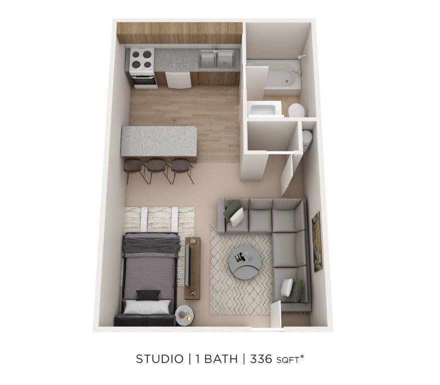 Studio, 1 Bath, 336 sq ftModel Gallery