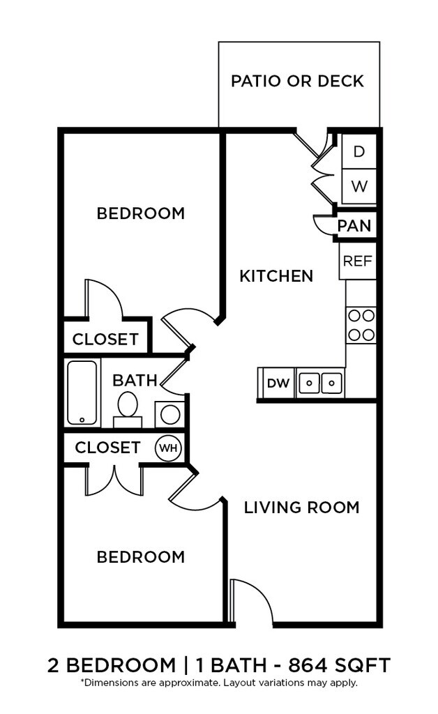 2 Beds, 1 Bath, 864 sq ftModel Gallery