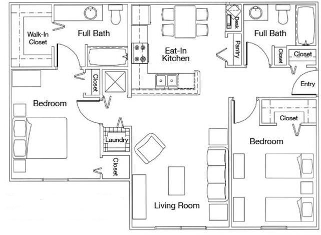 Two Bedroom Two Bathroom 60% - Floorplan 2 3 Bedrooms