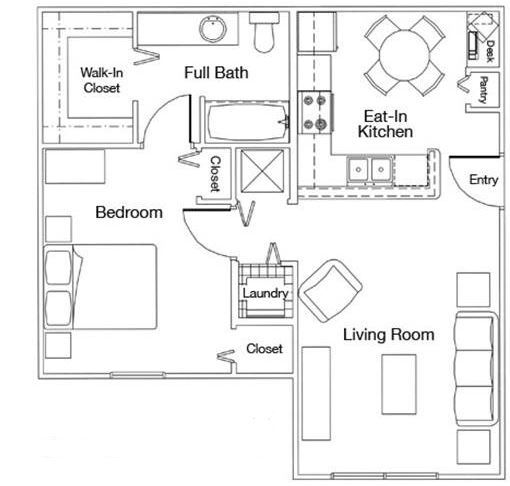 One Bedroom One Bathroom 60% - Floorplan 1 2 Bedrooms