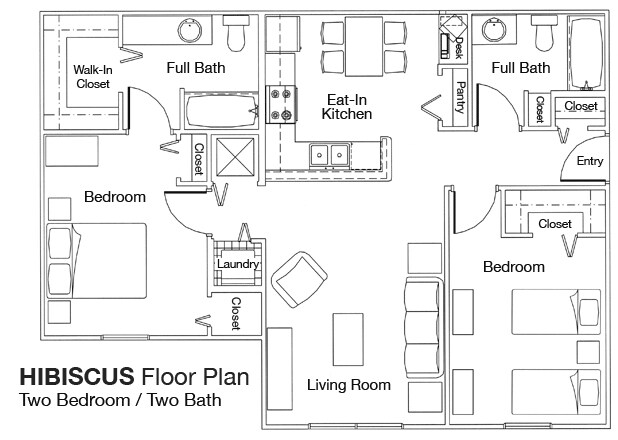 Two Bedroom Two Bathroom 60% - Floorplan 1 ![]()