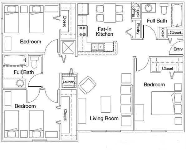 Apartment Model: Three Bedroom Two Bathroom 60%3 Bedroom, 2 Bath, 1144 sq ftAvailable Now![]()