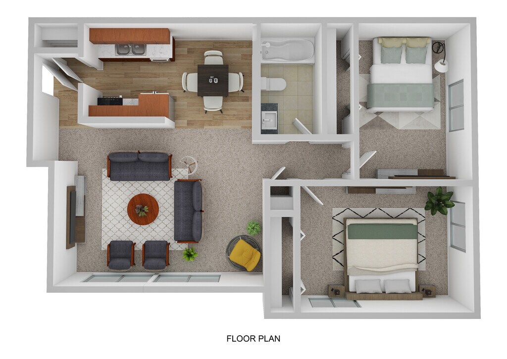 2 Beds, 1 Bath, 750 sq ftPlus FeesAvailable NowModel Gallery