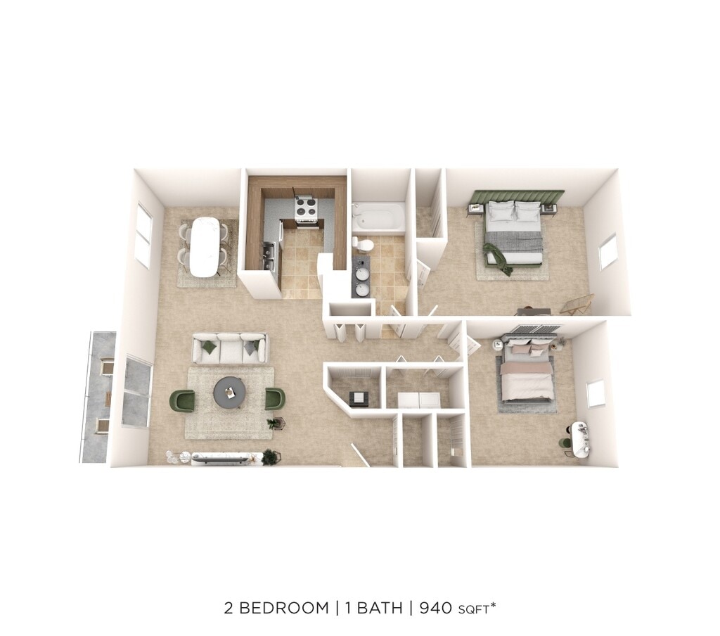 Apartment Model: One Bedroom - 600 sqftFrom $1,0801 Bedroom, 1 Bath, 600 sq ftAvailable Now![]()