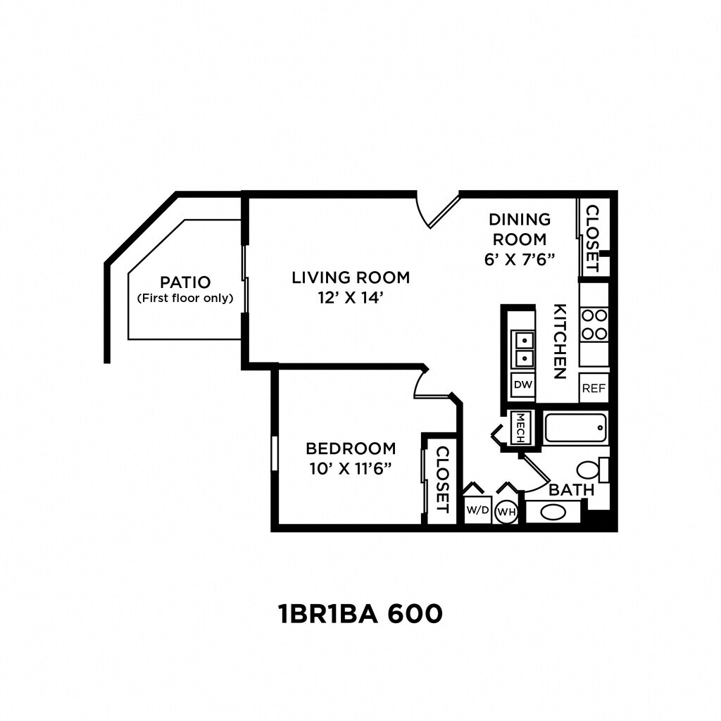 One Bedroom - 600 sqft - Floorplan 1 ![]()