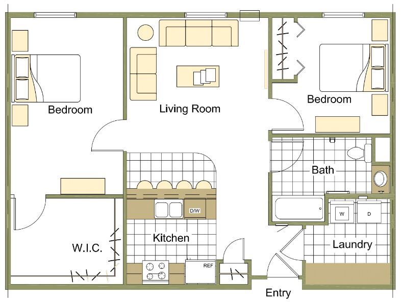 2 Bed 1 Bath - Floorplan 1 ![]()