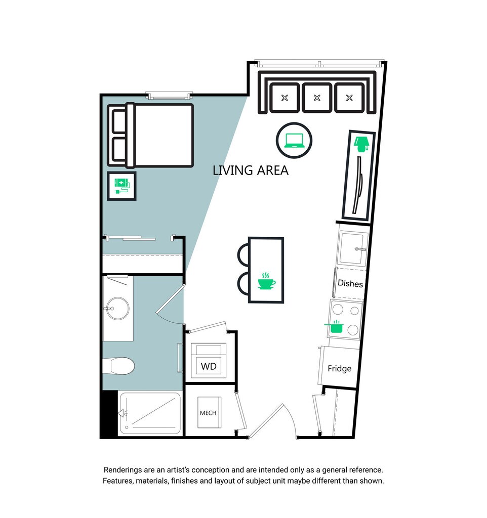 1 Bed, 1 Bath, 301 sq ftAvailable NowModel Gallery