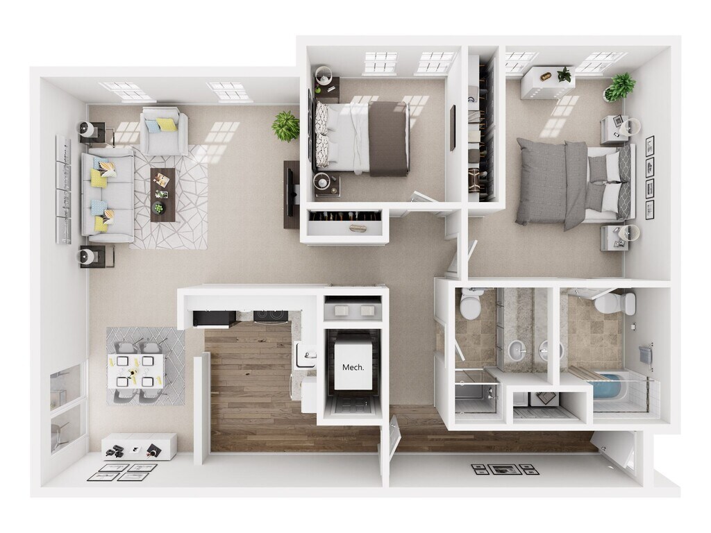 2 Beds, 2 Baths, 1200 sq ftAvailable NowModel Gallery