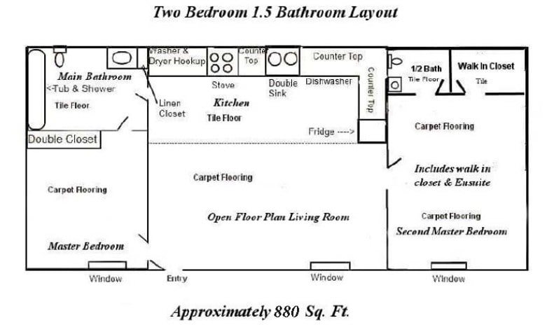 Two Bedroom/1.5 Bath - Floorplan 1 Two Bedroom/2 Bath