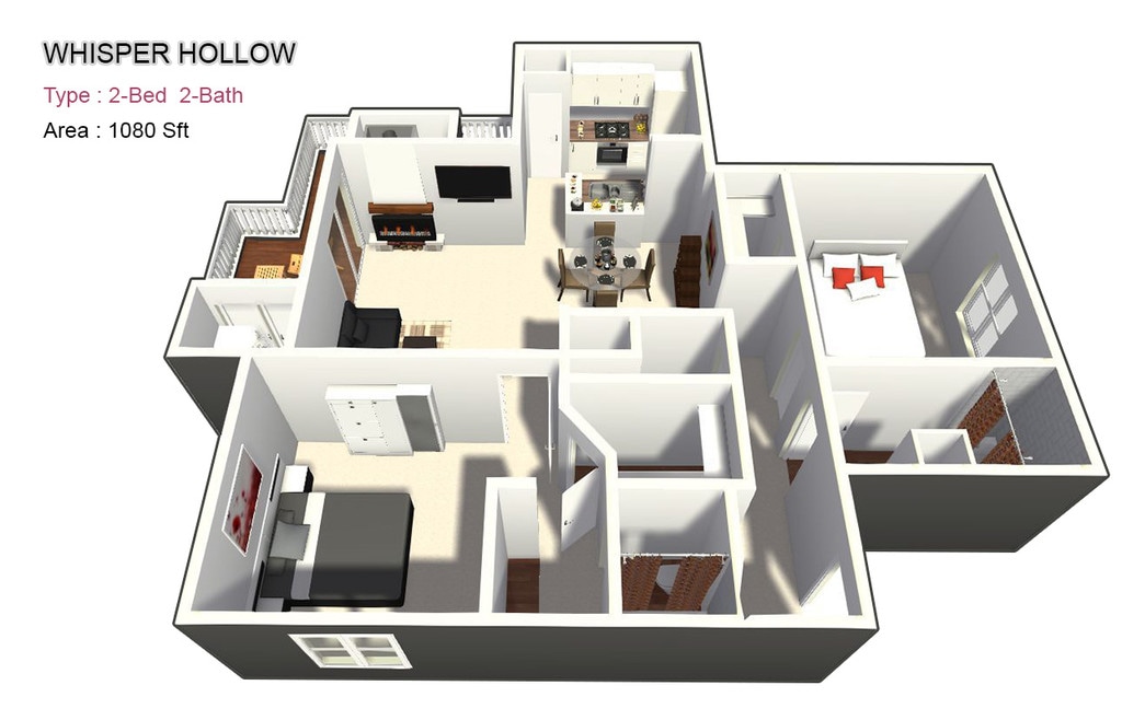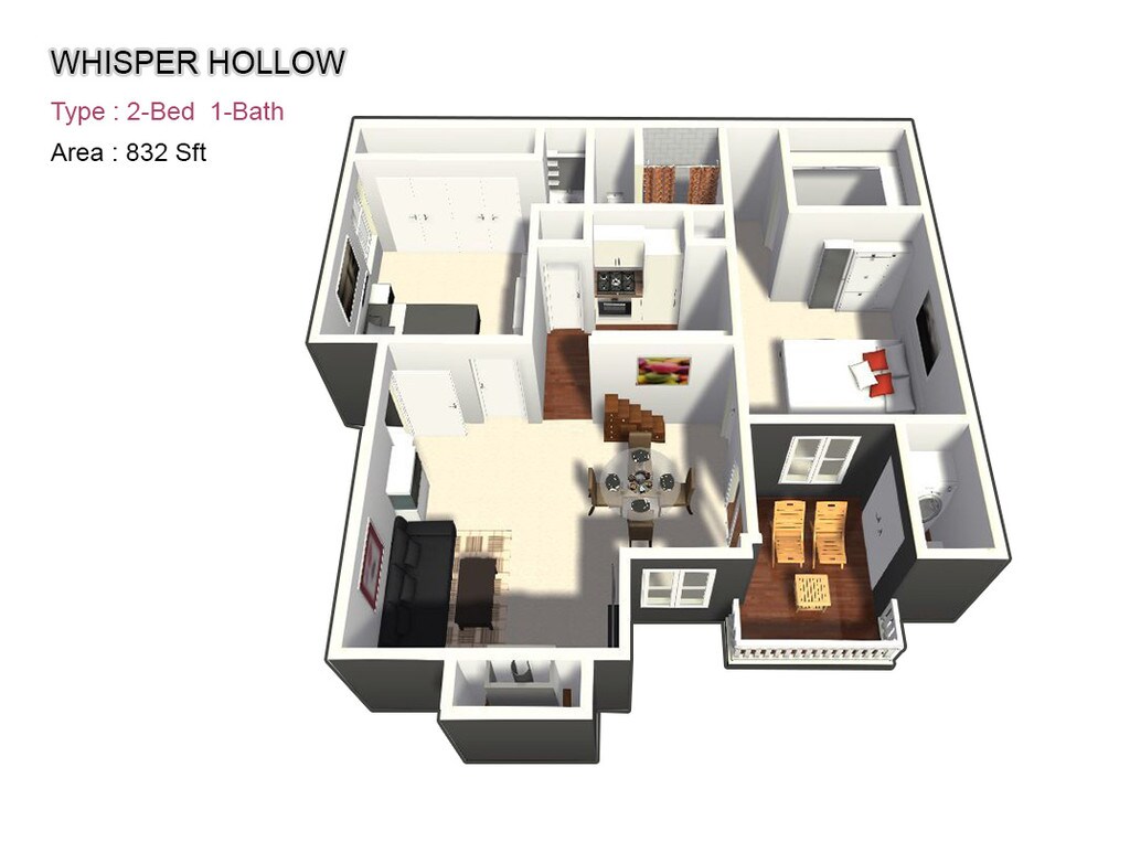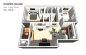 Whisper Hollow offers Studio to 2 Bedroom apartments starting from $855 and having 474–1,080 sq ft. Here is the current pricing and availability: