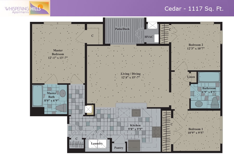 3 Beds, 2 Baths, 1117 sq ftModel Gallery