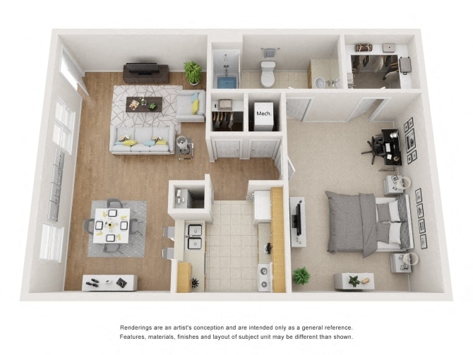 1 Bed, 1 Bath, 640 sq ftModel Gallery