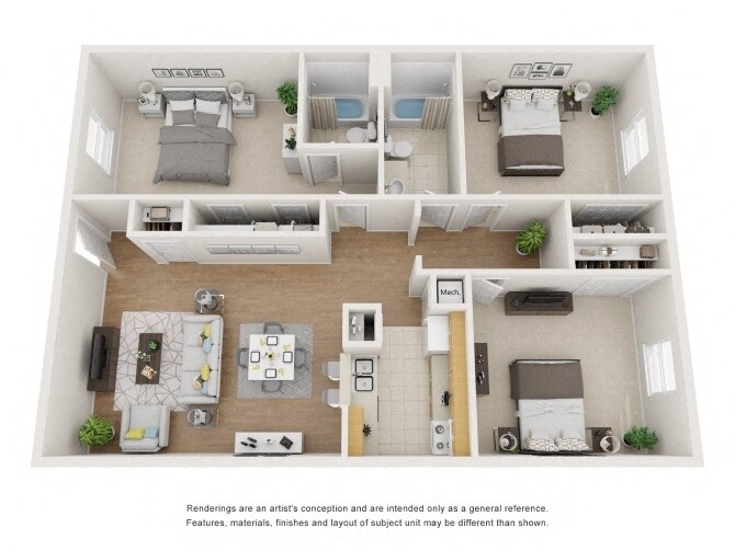3 Beds, 2 Baths, 1100 sq ftModel Gallery