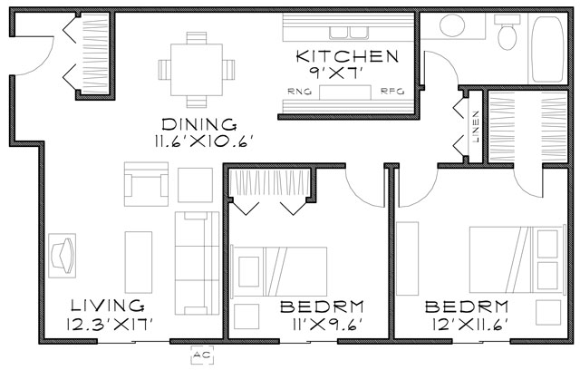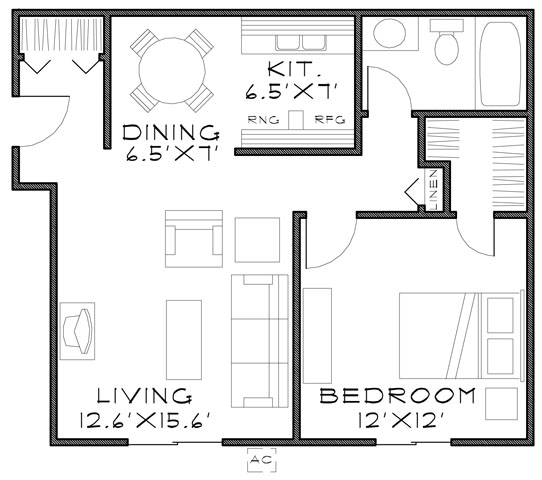 1x1 Standard - Floorplan 1 2 Bedrooms