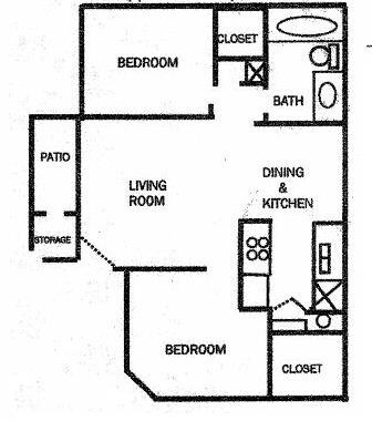 Apartment Model: 2x12 Bedroom, 1 Bath, 832 sq ftUnavailable![]()