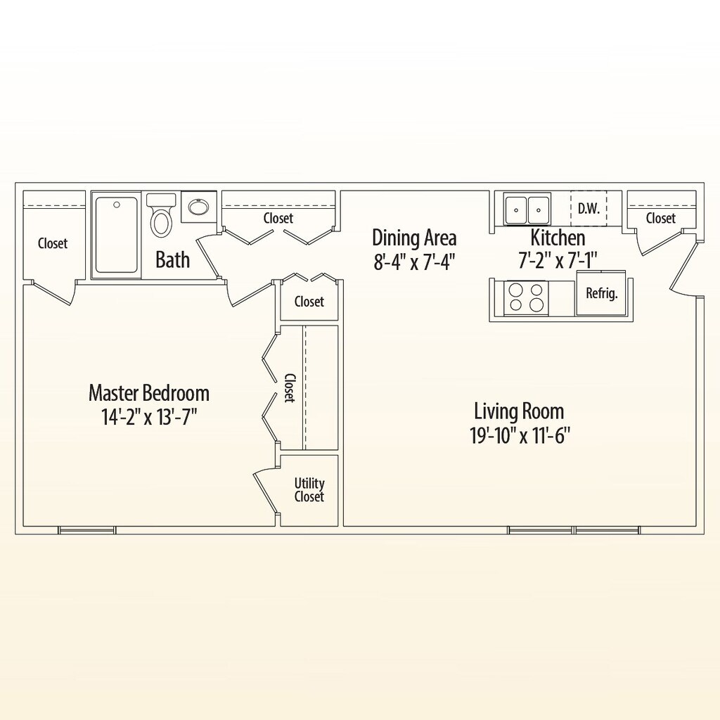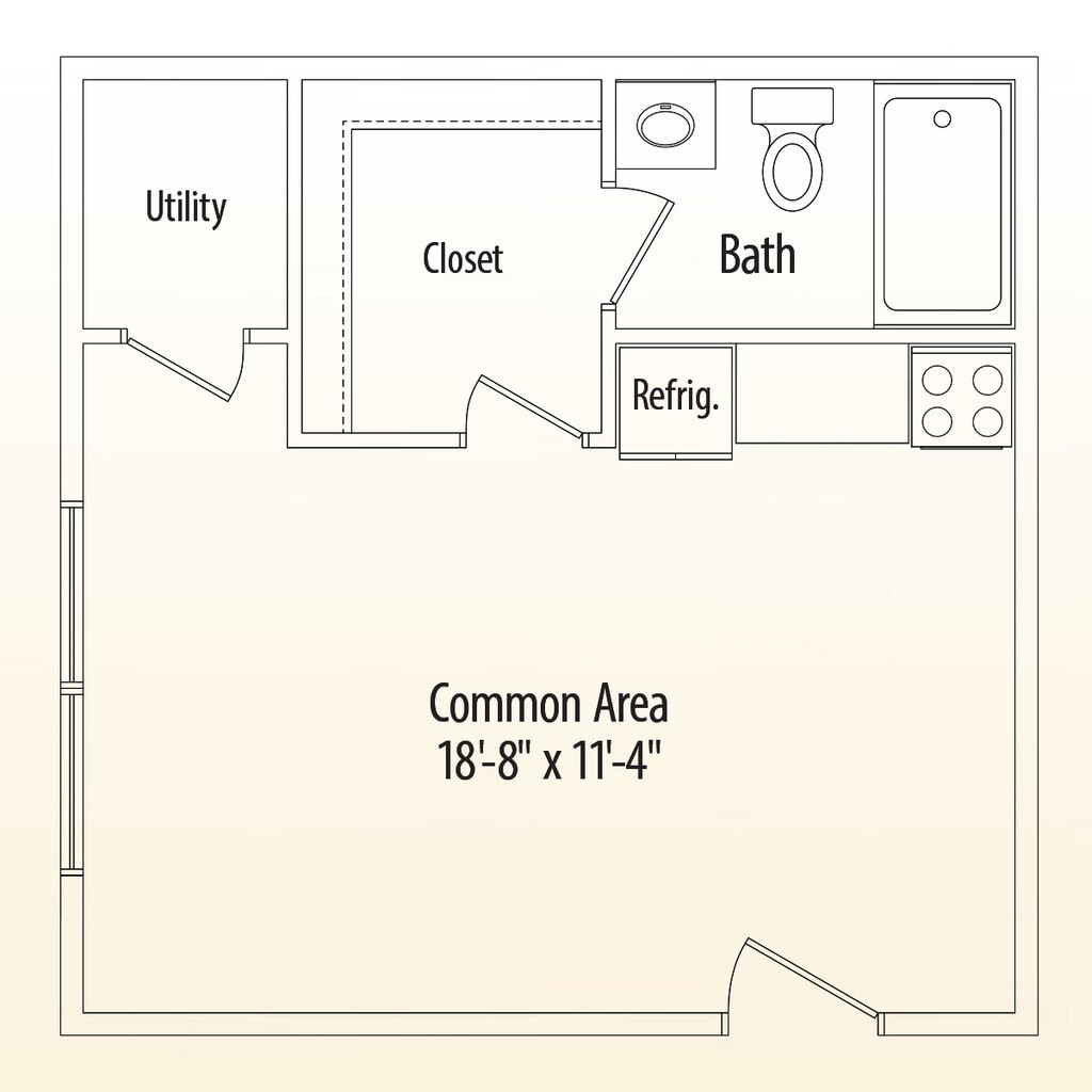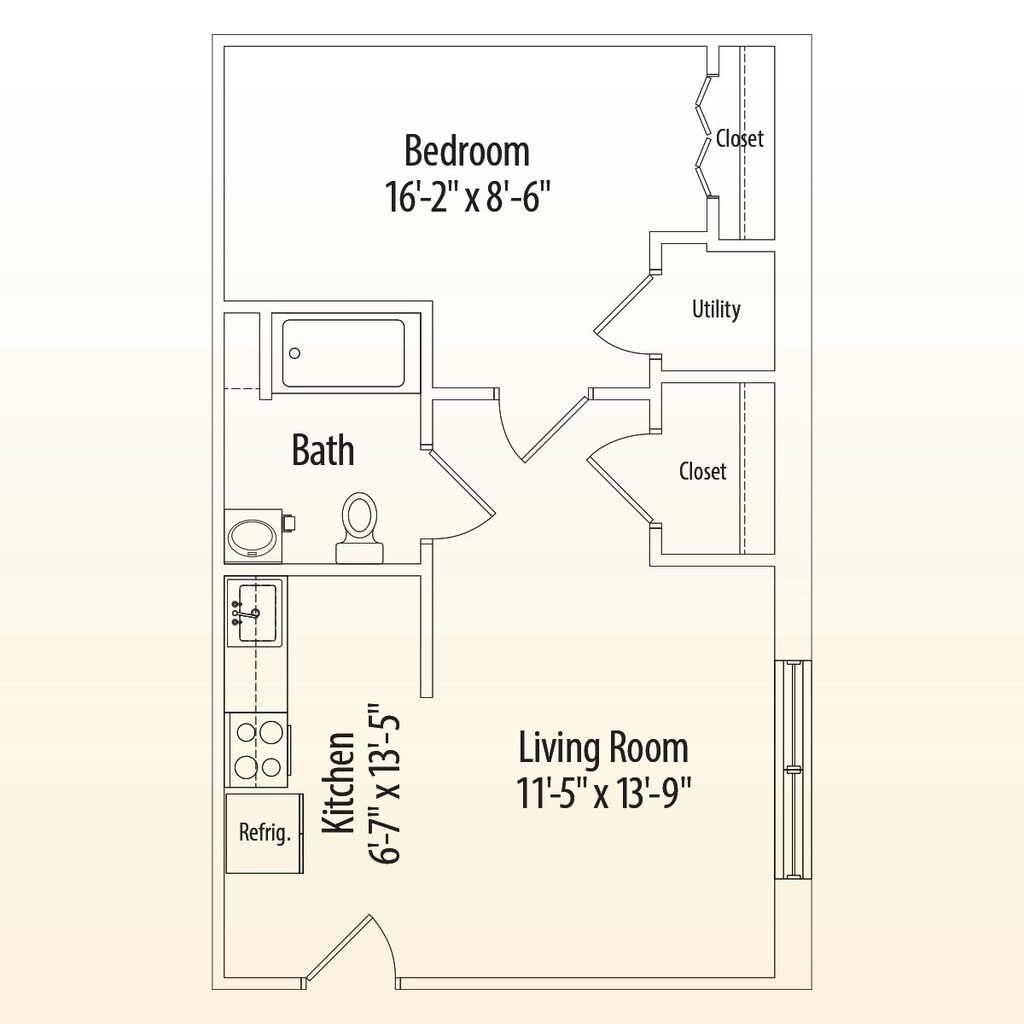 The Brookfield - Floorplan 1 Apartment Unit: 02-101WWApartment Model: The Brookfield$958Studio, 1 Bath, 384 sq ftAvailable NowThe Cloverfield