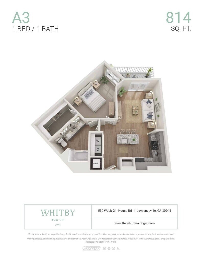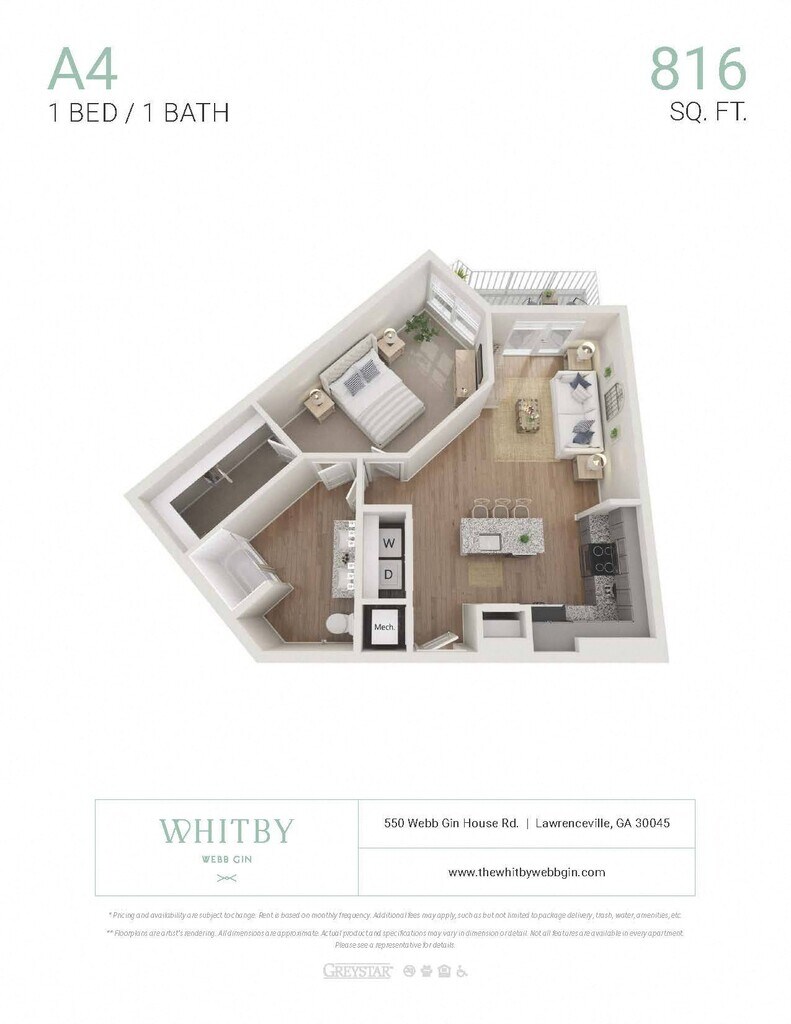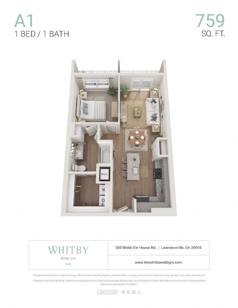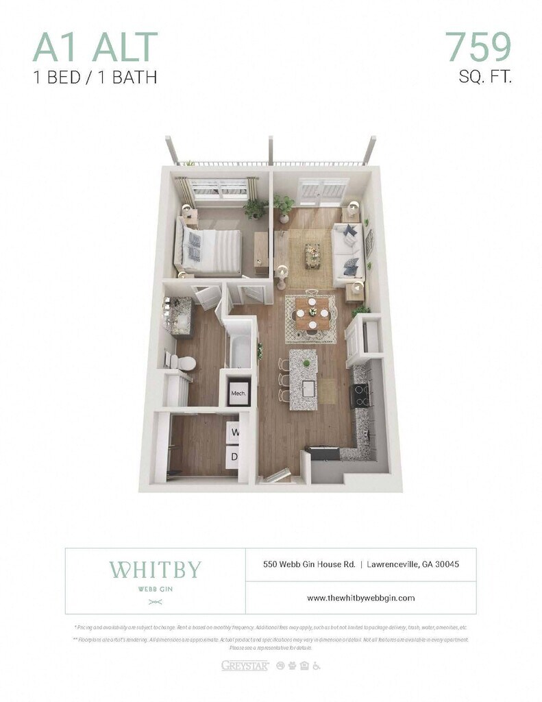 Apartment Model: A1 ALTFrom $1,4611 Bedroom, 1 Bath, 759 sq ftAvailable NowFloor plans are artist's rendering. All dimensions are approximate. Actual product and specifications may vary in dimension or detail. Not all features are available in every rental home. Prices and availability are subject to change. Base rent is based on monthly frequency. Additional fees may apply, such as but not limited to package delivery, trash, water, amenities, etc. Deposits vary. Please see a representative for details.
