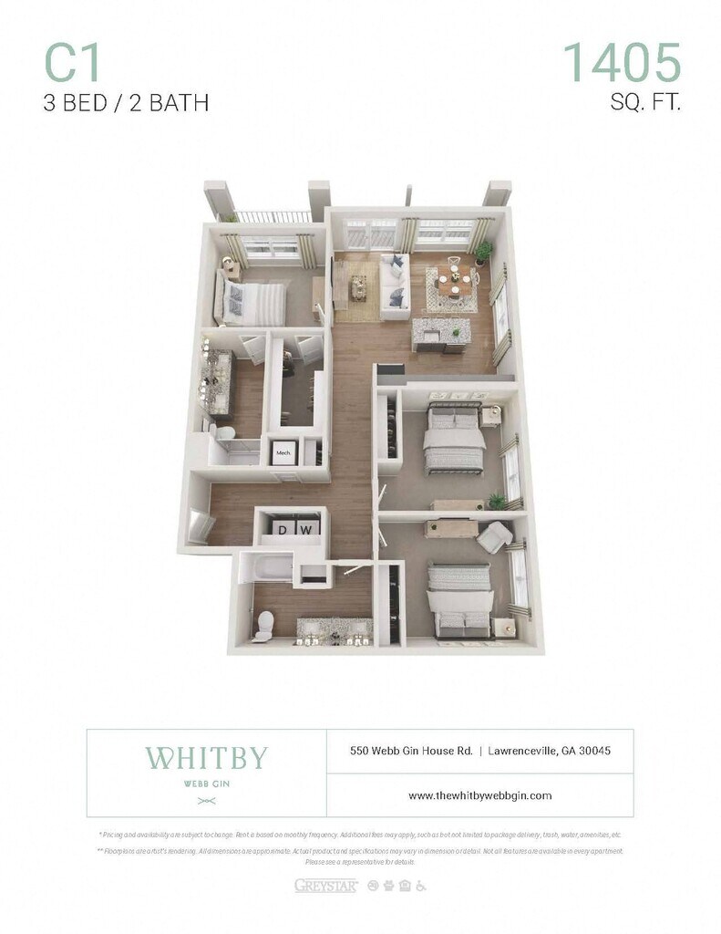 Whitby offers 1 to 3 Bedroom apartments starting from $1,461 and having 759–1,452 sq ft. Here is the current pricing and availability: