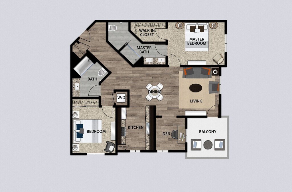 The Magnolia, 2 Bed 2 Bath With Den - Floorplan 2 Apartment Unit: 400Apartment Model: The Magnolia, 2 Bed 2 Bath With Den$3,7252 Bedroom, 2 Bath, 1290 sq ftAvailable Now