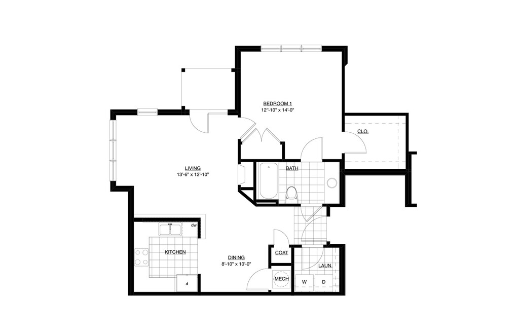 1 Bed, 1 Bath, 755 sq ftModel Gallery