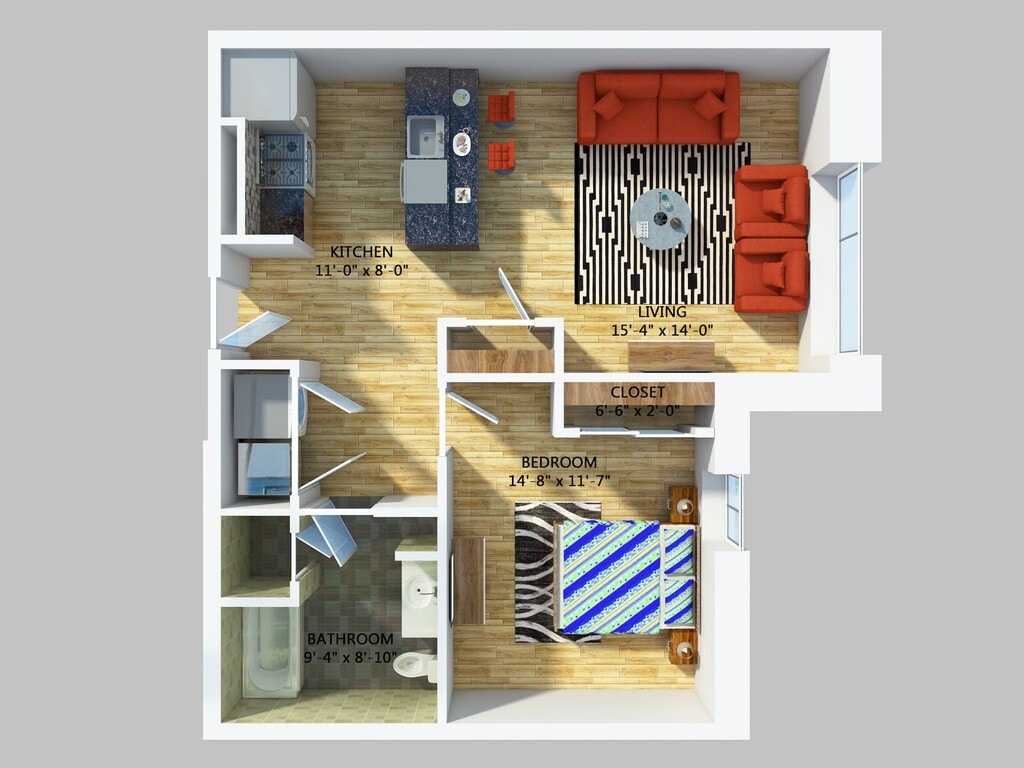 1 Bed, 1 Bath, 700 sq ftAvailable February 15, 2026Largest 1 BedroomThis is the largest 1 Bedroom at this PropertyModel Gallery