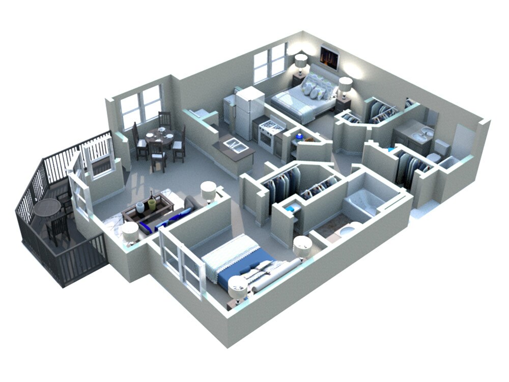 2 Beds, 2 Baths, 1027 sq ftModel Gallery