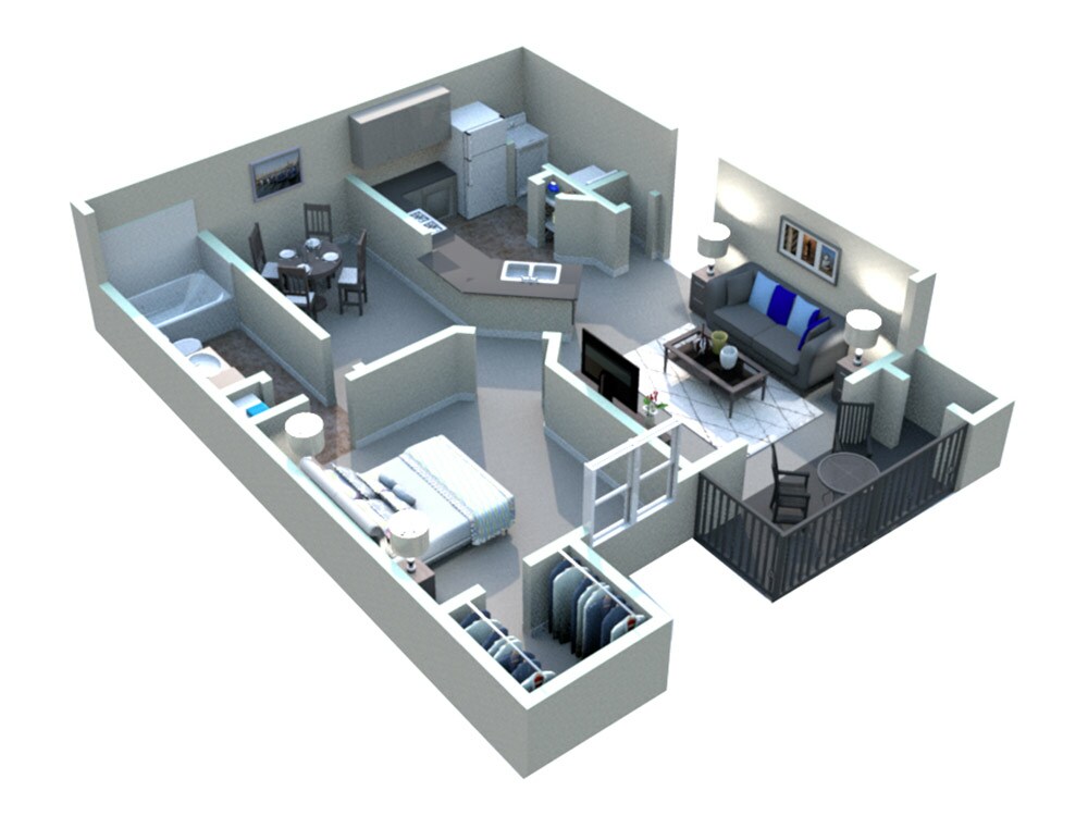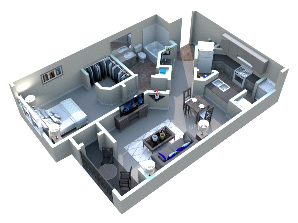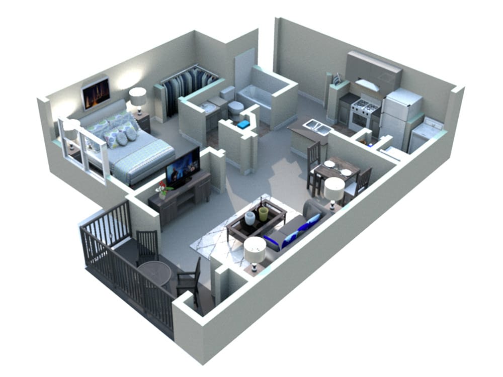 1 Bed, 1 Bath, 641 sq ftModel Gallery