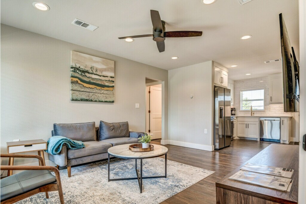 **5-STAR** property rating on Search Engine reviews page. Welcome to White Rock Views! Fully Remodeled and UPDATED - We have both furnished and unfurnished now leasing! Near White Rock Lake, this popular location provides easy access to White Rock Lake Trail, shopping, fitness, and dining in the Arboretum Village. A short 5-minute drive lands you in Deep Ellum towards Downtown Dallas. CaneRosso, White Rock Brewery, Tom Thumb, Raising Cane's, Starbucks and much more... The 2 BEDROOMS and 1 BATHROOM are GORGEOUS with Quartz and custom cabinets, Moen faucet with an under-mounted sink, and a stellar overhead bathroom vanity. Enjoy all the small details like a shampoo cubby, a smart home hub, and a slow-close toilet seat. Stylishly units include a Technology Package of 7 in. Smart Home Hub, Nest thermostat, mounted 50 in 4K Samsung TV, smart full-size washer and dryer. Surround yourself with contemporary space : Hardwood floors Quartz countertops Modern ceiling fans Gold & black hardware Marble tile Cast iron tub Washer and Dryer front loading Samsung in the unit Samsung Refrigerator has water and ice in the door