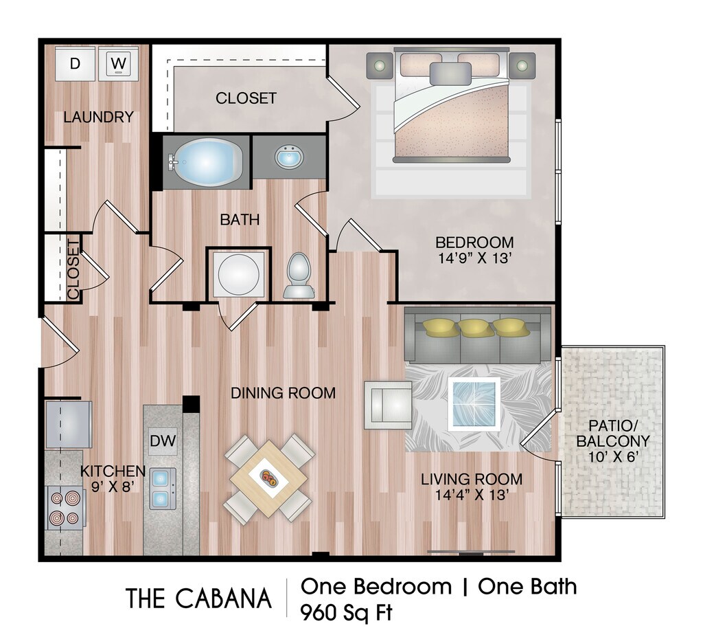 1 Bed, 1 Bath, 1050 sq ftAvailable Nov 2Largest 1 BedroomThis is the largest 1 Bedroom at this PropertyModel Gallery