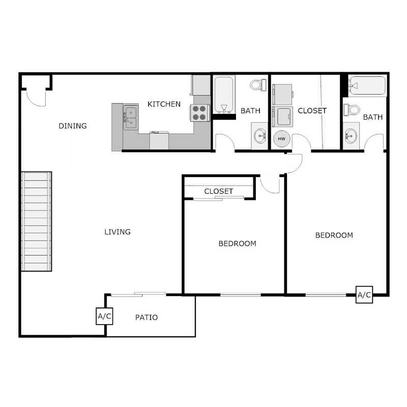 2 Beds, 2 Baths, 1177-1266 sq ftLargest 2 BedroomThis is the largest 2 Bedroom at this PropertyModel Gallery
