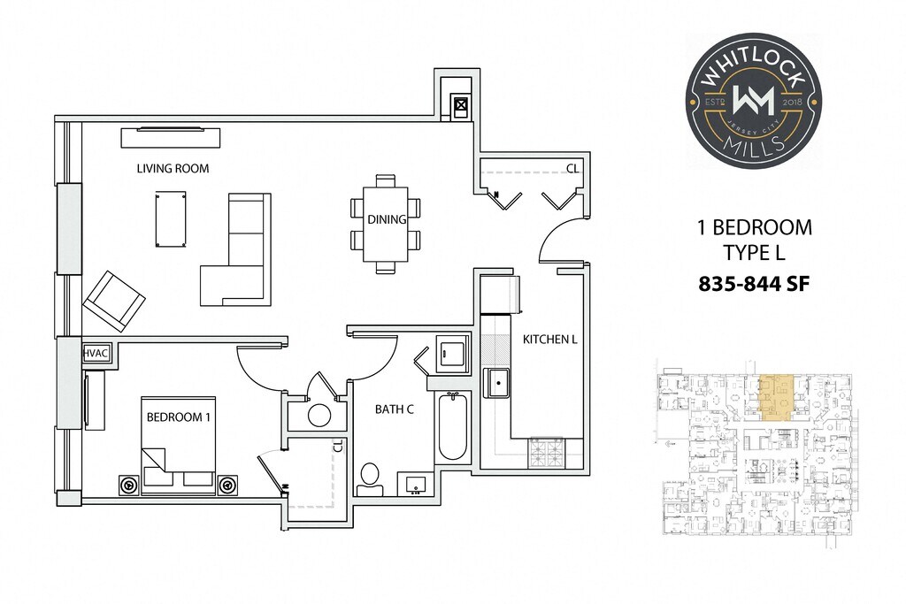 1 Bed, 1 Bath, 835-844 sq ftLargest 1 BedroomThis is the largest 1 Bedroom at this PropertyModel Gallery