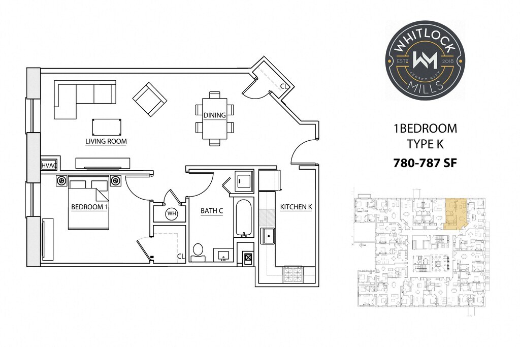 1 Bedroom - Floorplan 1 Building F - 1 Bedroom - Unit Type K