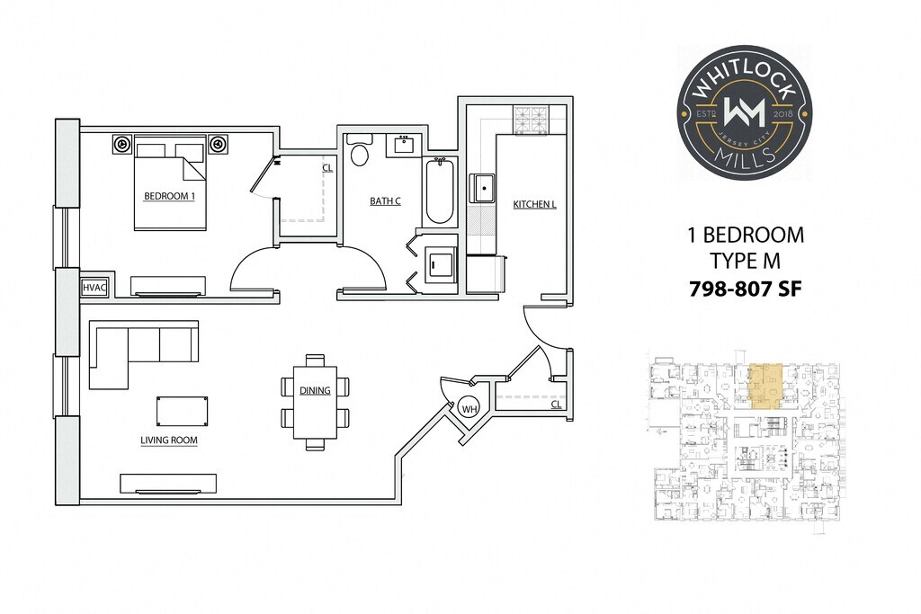Building F - 1 Bedroom - Unit Type M - Floorplan 1 Building F - 1 Bedroom - Unit Type A
