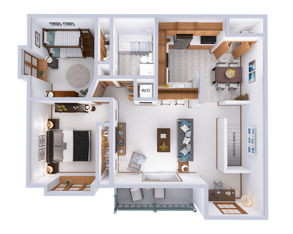 2 Bed, 1 Bath Lower - Floorplan 7 Apartment Unit: 27-4Apartment Model: 2 Bed, 1 Bath Lower$1,5182 Bedroom, 1 Bath, 992 sq ftAvailable January 7, 2026