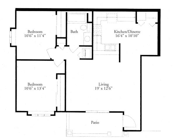 2 Bed, 1 Bath Lower - Floorplan 2 ![]()
