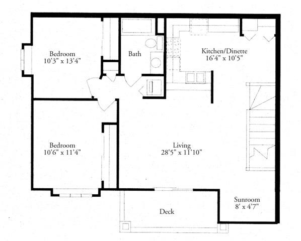 2 Bed, 1 Bath Lower - Floorplan 4 ![]()