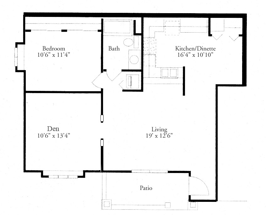 1 Bed, 1 Bath + Den - Floorplan 1 ![]()