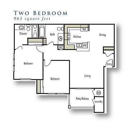 2 Bedroom 2 Bath - Floorplan 1 Apartment Unit: 0222Apartment Model: 2 Bedroom 2 Bath2 Bedroom, 2 Bath, 963 sq ftAvailable December 5, 20253 Bedrooms
