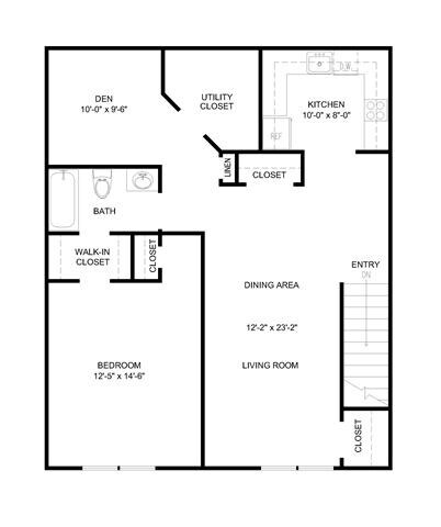 1 Bed 1 Bath Den - Floorplan 1 1 Bed 2 Bath Den
