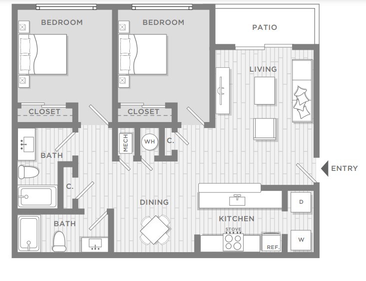 Apartment Model: 2x2From $8902 Bedroom, 2 Bath, 787-825 sq ftAvailable January 26, 2026![]()
