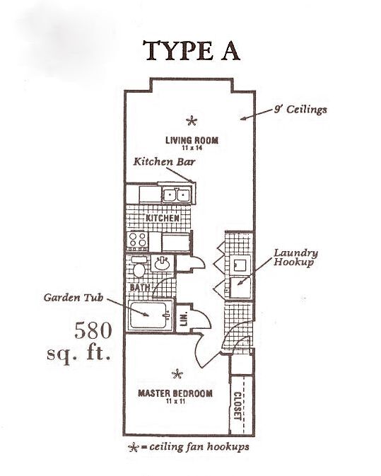 A - Floorplan 1 Apartment Unit: 1stFloorApartment Model: A$9201 Bedroom, 1 Bath, 580 sq ftAvailable November 7, 2025Floorplan B