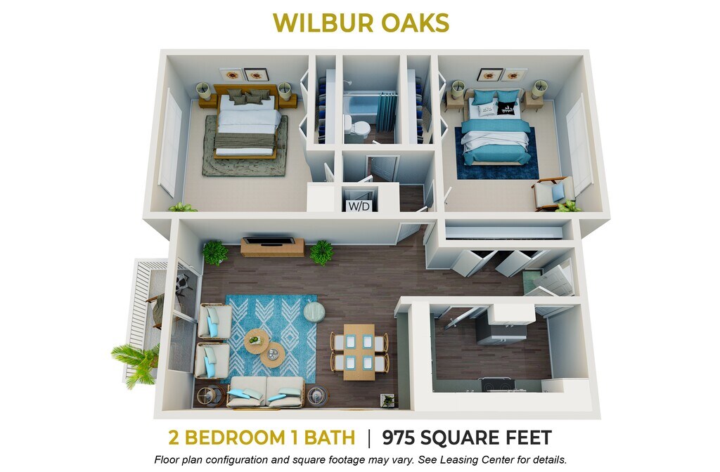 Wilbur Oaks Apartments offers 1 to 3 Bedroom apartments having 780–1,331 sqft. Here is the current pricing and availability: