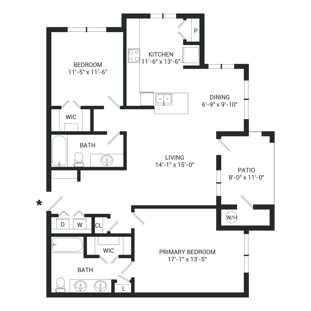 1 Bed, 1 Bath, 892 sq ftAvailable NowLargest 1 BedroomThis is the largest 1 Bedroom at this PropertyModel Gallery