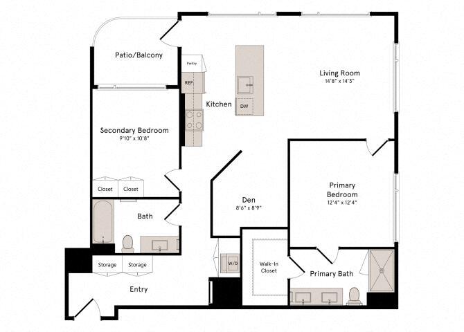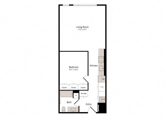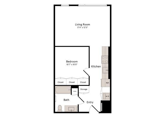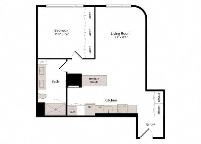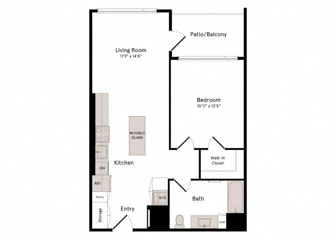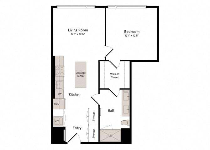 Apartment Model: U1.4From $1,749Studio, 1 Bath, 655 sq ftAvailable NowFloor plans are artist's rendering. All dimensions are approximate. Actual product and specifications may vary in dimension or detail. Not all features are available in every rental home. Prices and availability are subject to change. Base rent is based on monthly frequency. Additional fees may apply, such as but not limited to package delivery, trash, water, amenities, etc. Deposits vary. Please see a representative for details.