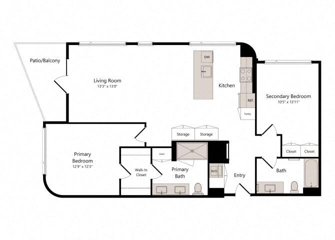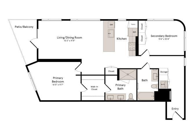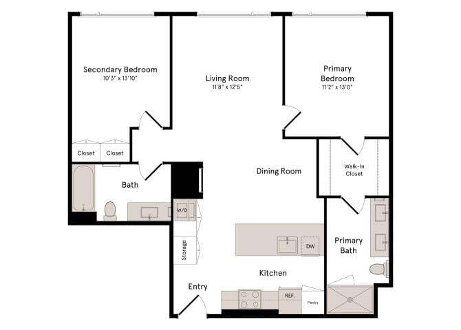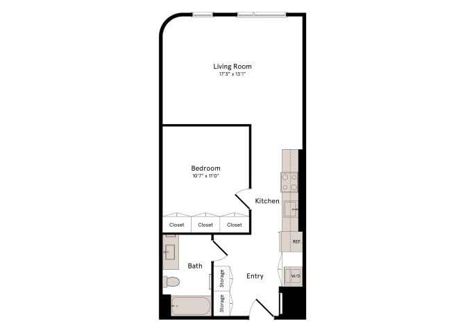 Apartment Model: U1.3$1,5991 Bedroom, 1 Bath, 687 sq ftAvailable NowFloor plans are artist's rendering. All dimensions are approximate. Actual product and specifications may vary in dimension or detail. Not all features are available in every rental home. Prices and availability are subject to change. Base rent is based on monthly frequency. Additional fees may apply, such as but not limited to package delivery, trash, water, amenities, etc. Deposits vary. Please see a representative for details.