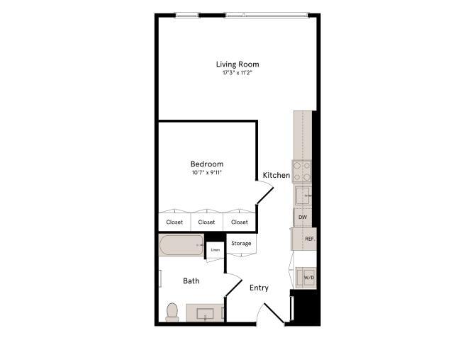 Apartment Model: U1.6$1,915Studio, 1 Bath, 649 sq ftAvailable NowFloor plans are artist's rendering. All dimensions are approximate. Actual product and specifications may vary in dimension or detail. Not all features are available in every rental home. Prices and availability are subject to change. Base rent is based on monthly frequency. Additional fees may apply, such as but not limited to package delivery, trash, water, amenities, etc. Deposits vary. Please see a representative for details.